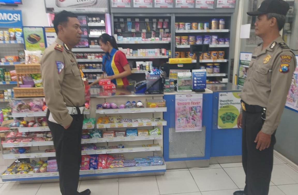 Salah satunya dilakukan personil Unit Sabhara dan Unit Lantas di mini market Indomart, Jalan Dupak Rukun.