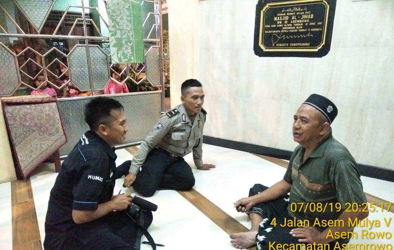Seputarperak.com- Kunjungan dilakukan Ipda Eko Mustaghfirin, Panit Binmas Polsek Asemrowo, Polres Pelabuhan Tanjung Perak di Masjid Al Jihad, Jalan Asem Mulya gang V, Rabu malam, 7 Agustus 2019.