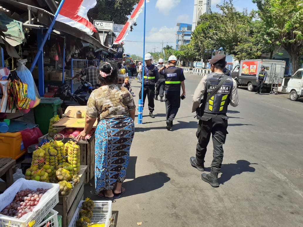 Seputarperak.com- Patroli bersama dilakukan personil Satsabhara Polres Pelabuhan Tanjung Perak dan sekuriti Pelindo III di kawasan Pasar Ujung, Selasa pagi, 13 Agustus 2019.