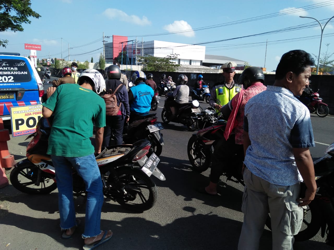 Saat itu seluruh kendaraan yang melintas, baik sepeda motor ataupun mobil, dihentikan dan dilakukan pemeriksaan.