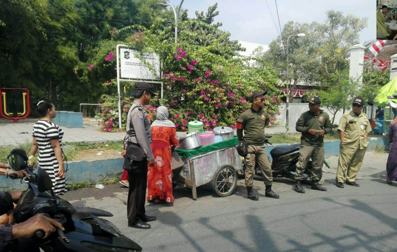 Seputarperak.com- Operasi penertiban pedagang kaki lima (PKL) dilaksanakan anggota Satpol PP Kecamatan Kenjeran di sepanjang Jalan Tambak Wedi Baru, Selasa, 27 Agustus 2019.