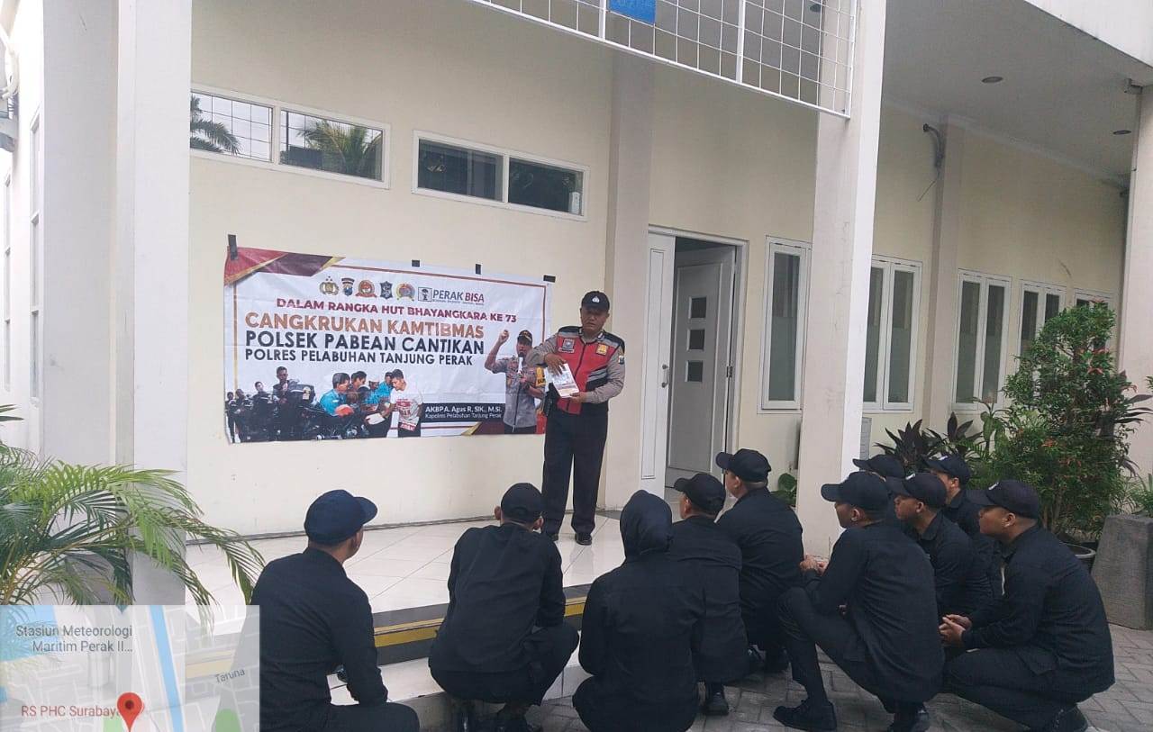Seputarperak.com- Sosialisasi Operasi Patuh Semeru 2019 disampaikan Aiptu Heru Winarto, Babinkamtibmas Perak Utara, Polsek Pabean Cantikan, Polres Pelabuhan Tanjung Perak kepada sejumlah sekuriti Rumah Sakit Porth Health Centre (PHC), Senin pagi, 2 September 2019.