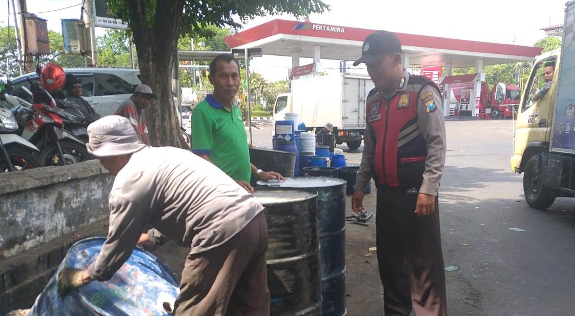 Seputarperak.com- Himbauan ketertiban disampaikan Aiptu Made Suarthana, Babinkamtibmas Bongkaran, Polsek Pabean Cantikan, Polres Pelabuhan Tanjung Perak kepada para pedagang drum di Jalan Waspada.