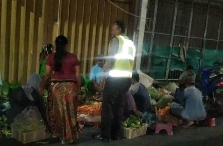 Seputarperak.com- Patroli malam dilakukan Aipda Farid, Babinkamtibmas Nyamplungan, Polsek Pabean Cantikan di seputaran Pasar Pabean, Jalan Songoyudan, Rabu malam, 4 September 2019.