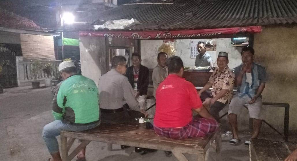 Dalam kunjungannya, Jumat malam, 6 September 2019, Aiptu Muhadi Purnomo menyampaikan pesan-pesan kamtibmas kepada warga yang sedang nongkrong di warung setempat.