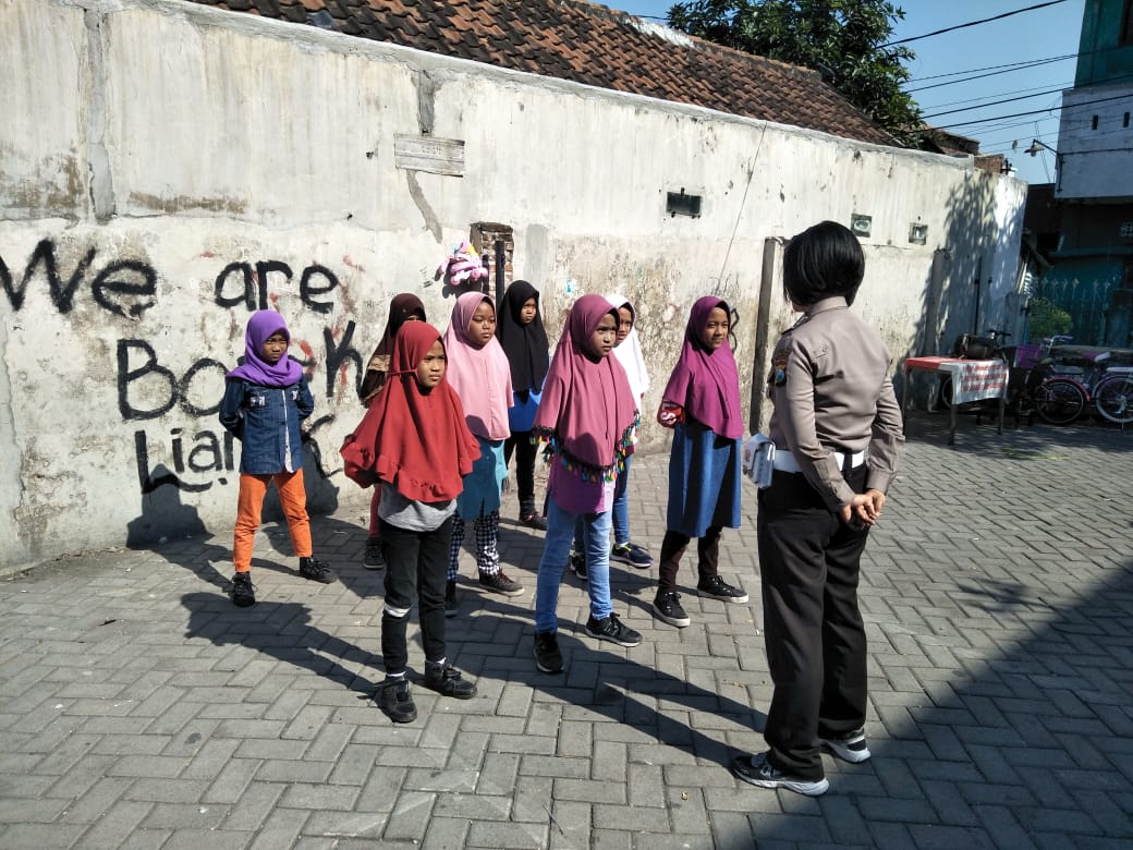 Dalam kesempatan itu, personil Polwan Satlantas mengajarkan anak-anak Madrasah Ibtidaiyah (MI) Alhidayah tentang tugas-tugas polisi. Terutama mengenai tugas pengaturan lalu lintas.
