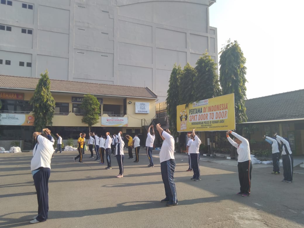 Para personil mengikuti gerakan-gerakan yang dilakukan oleh Iptu Heri dengan penuh semangat, hingga berakhir pada pukul 08.00.