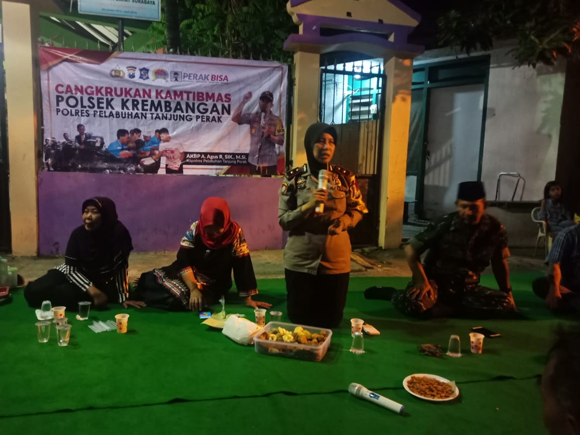 Seputarperak.com- Kapolsek Krembangan, Polres Pelabuhan Tanjung Perak, Kompol Esti Setija Oetami, SH, memimpin acara cangkrukan bersama 50 orang warga, Senin malam, 23 September 2019 di Jalan Ikan Dorang RT 11 RW 03.