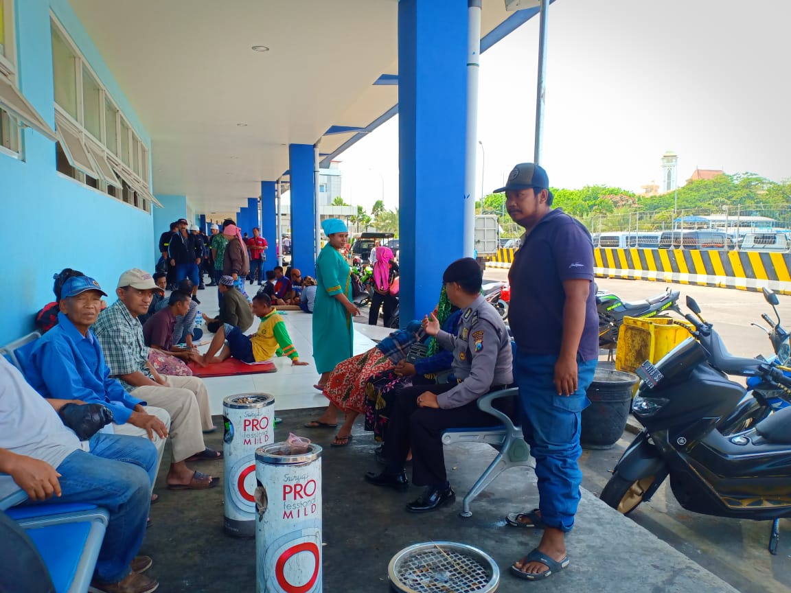 Selain melakukan pemantauan, personil Satsabhara juga menyampaikan pesan-pesan kamtibmas kepada calon penumpang kapal.