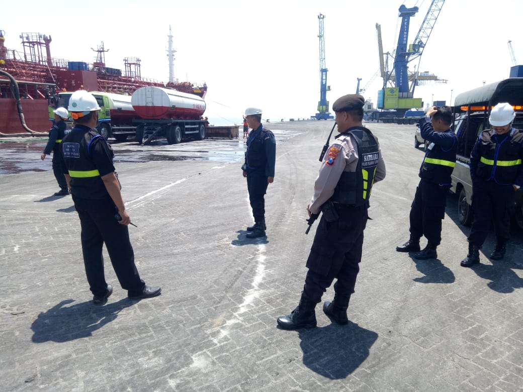 Saat itu selain melakukan pemantauan situasi keamanan di sekeliling pelabuhan, personil Satsabhara juga menyampaikan pesan-pesan kamtibmas kepada para sopir dan pekerja.