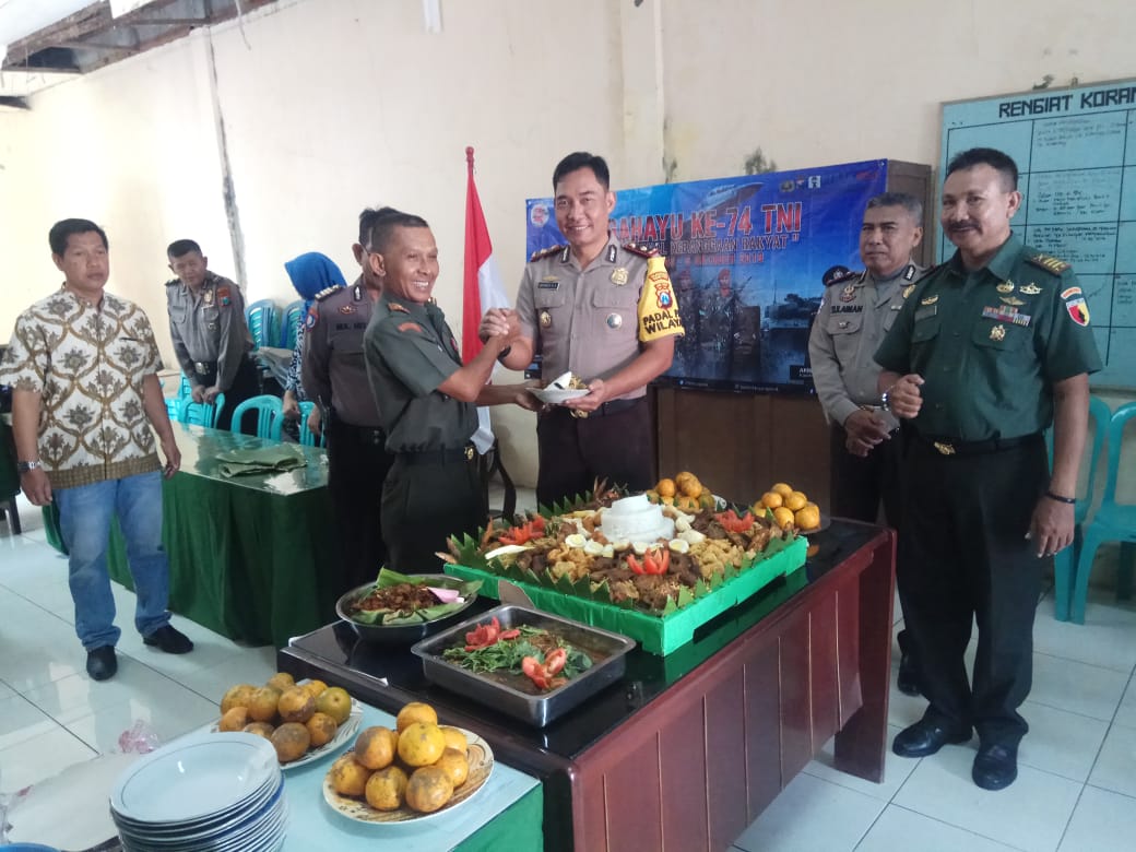 Seputarperak.com- Memperingati HUT TNI Ke-74, Polsek Semampir, Polres Pelabuhan Tanjung Perak memberikan tumpeng untuk Koramil Semampir, Jumat, 4 Oktober 2019.