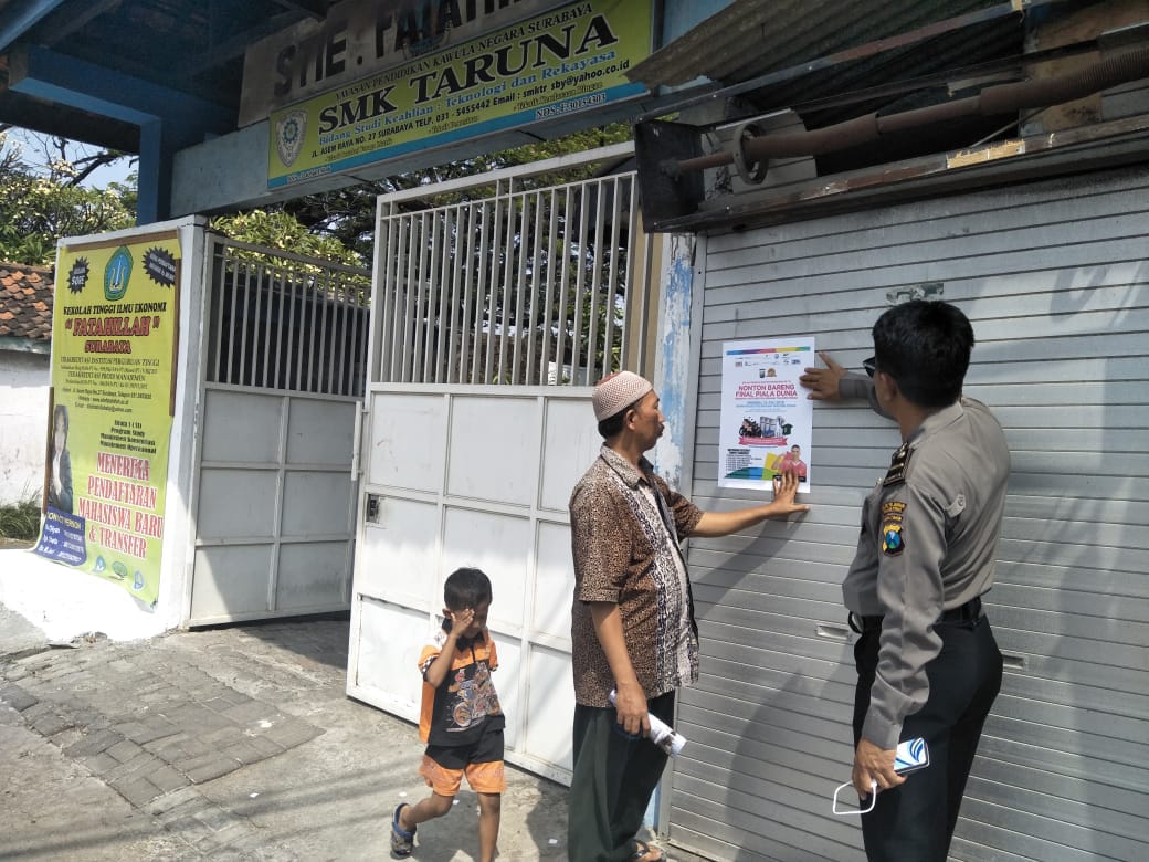 Saat itu Ipda Yunus membagikan brosur dan memasang pamphlet Nobar, sambil menyampaikan ajakan kepada warga yang ditemui, untuk segera mendaftarkan diri ke Polsek Asemrowo.