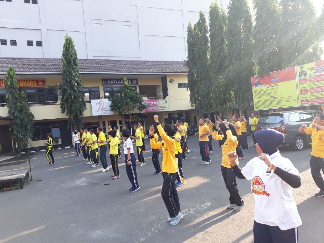 Usai pelaksanaan apel pagi, AKP Faried bersama instruktur erobik mulai mengajak para personil untuk melakukan gerakan-gerakan senam.