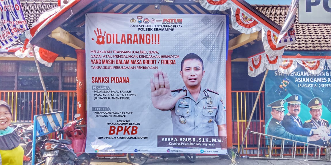 Salah satunya dilakukan Polsek Semampir, Polres Pelabuhan Tanjung Perak, yang pada Sabtu pagi, 14 Juli 2018, yang telah memasang banner mengenai fidusia di depan Mapolsek.