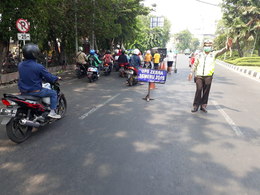 Seputarperak.com- Operasi Zebra Semeru 2019 hari keempat digelar Polsek Pabean Cantikan di seputaran Jalan Stasiun Kota, Sabtu pagi, 26 Oktober 2019.