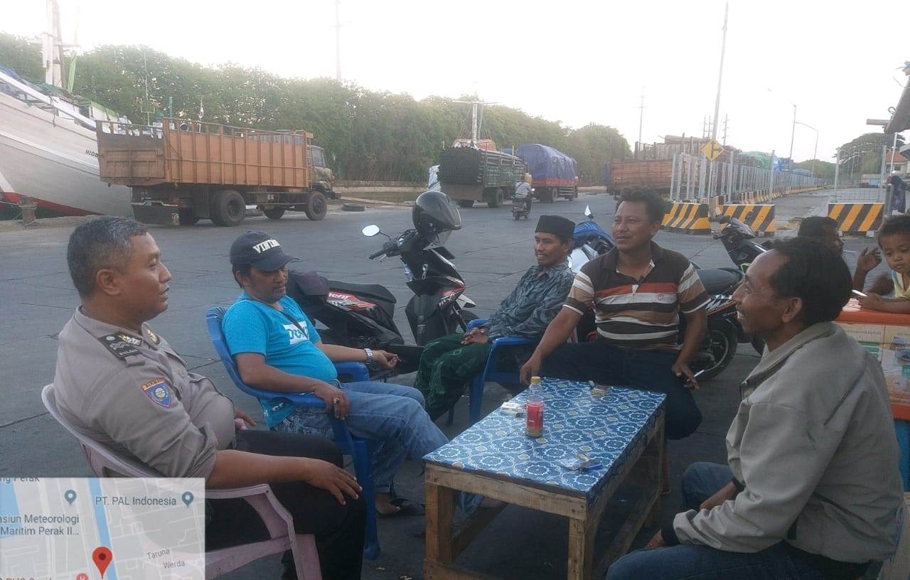 Seperti halnya yang dilakukan Aiptu Heru Winarto, Babinkamtibmas Perak Utara, Polsek Pabean Cantikan, Polres Pelabuhan Tanjung Perak saat menemui para pekerja di Pelabuhan Kalimas, Senin sore, 4 Nopember 2019.