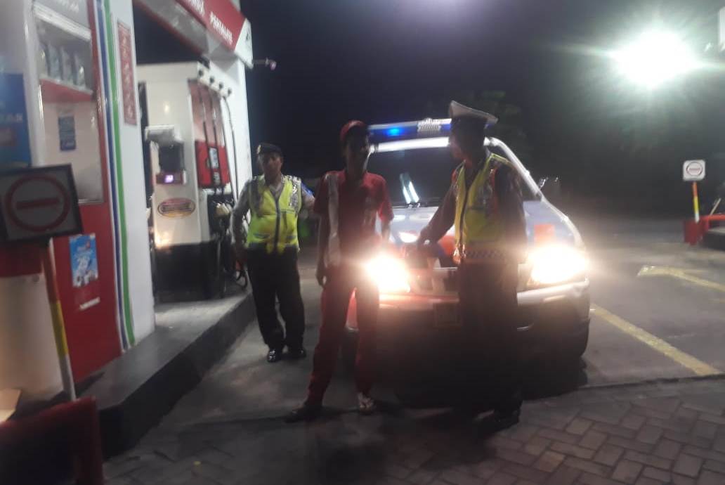 Seputarperak.com- Patroli malam dilaksanakan personil Unit Lantas dan Unit Sabhara Polsek Pabean Cantikan, Polres Pelabuhan Tanjung Perak di SPBU Jalan Stasiun Kota, Senin, 4 Nopember 2019.