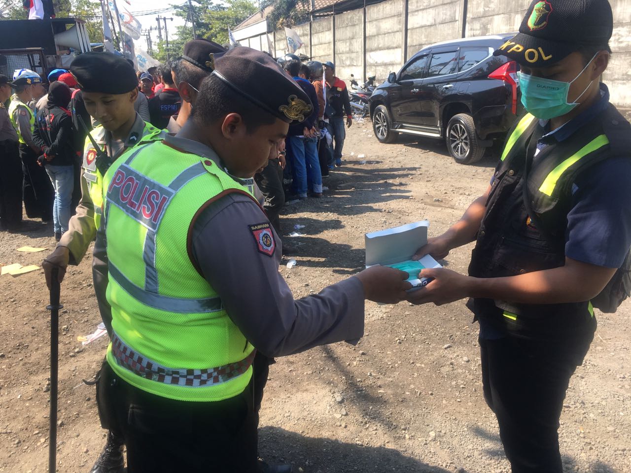 Beberapa personil Urkes saat itu melakukan penjagaan sambil terus mengawasi jalannya unjuk rasa.