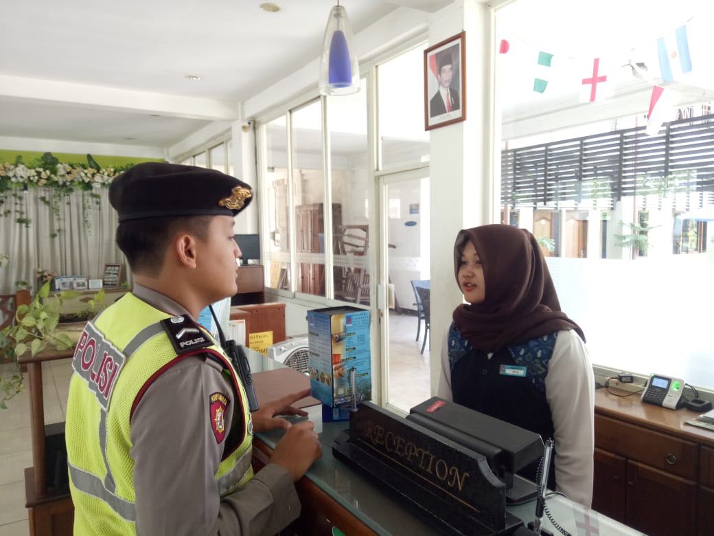Dalam kunjungannya, personil Satsabhara menyampaikan himbauan kepada petugas resepsionis hotel Pacific, agar waspada terhadap setiap pengunjung.