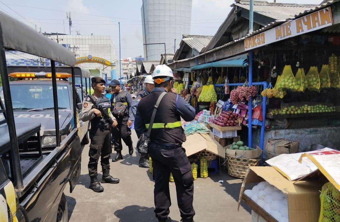 Seputarperak.com- Patroli dilakukan personil Satsabhara Polres Pelabuhan Tanjung Perak di seputaran Pasar Ujung bersama petugas sekuriti Pelindo, Rabu siang, 20 Noiopember 2019.