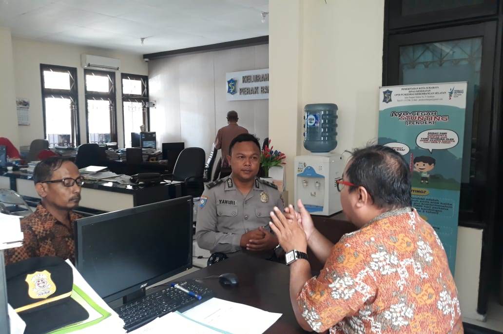 Seputarperak.com- Koordinasi kamtibmas dilakukan Aipda Yanuri, Babinkamtibmas Perak Barat, Polsek Krembangan, Polres Pelabuhan Tanjung Perak bersama sekretaris kelurahan Bapak Drs Dony, Kamis pagi, 21 Nopember 2019.