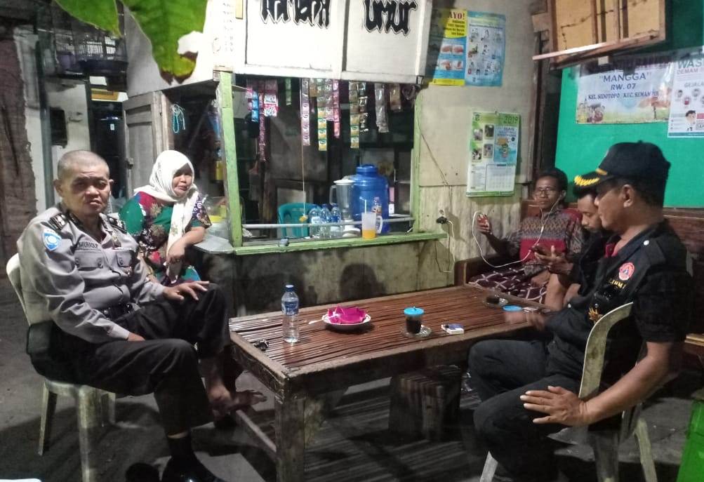 Seputarperak.com- Patroli malam dilakukan Aiptu Muhadi Purnomo, Babinkamtibmas Sidotopo, Polsek Semampir, Polres Pelabuhan Tanjung Perak di pemukiman Jalan Kunti, Jumat, 29 Nopember 2019.