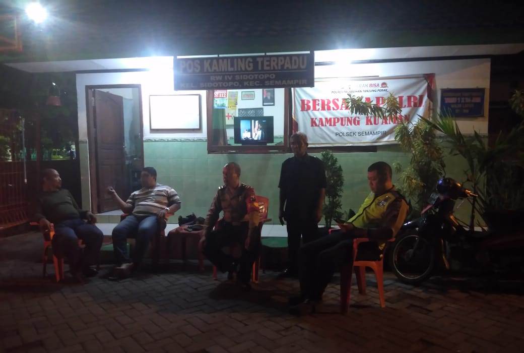 Seputarperak.com- Patroli malam dilakukan personil Polsek Semampir, Polres Pelabuhan Tanjung Perak di pemukiman RW 04 Kelurahan Sidotopo, Selasa, 3 Desember 2019.