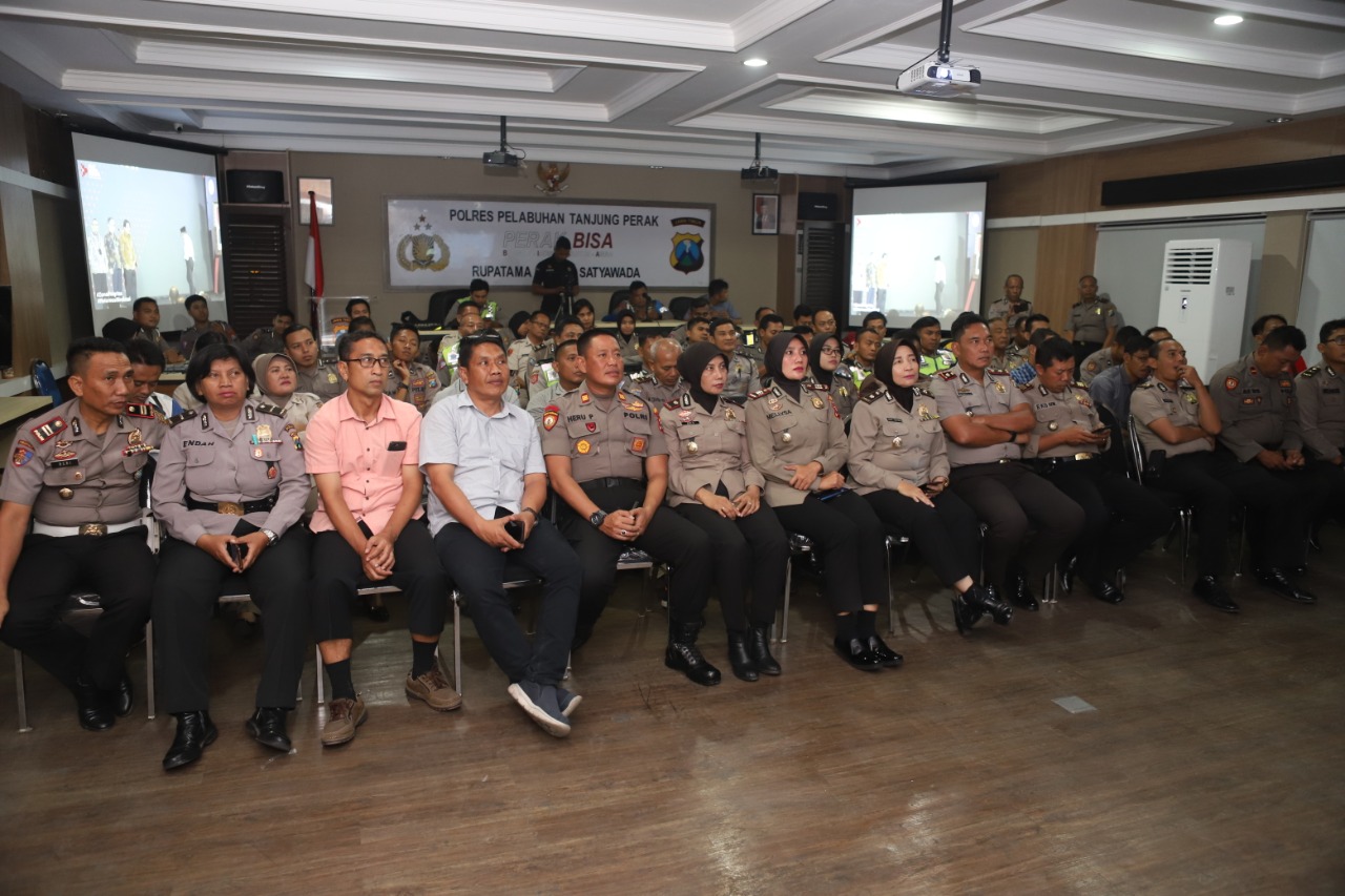 Seputarperak.com- Video Conference (Vicon) siaran langsung penyerahan penghargaan Zona Integritas (ZI) Wilayah Bebas Korupsi (WBK) dan Wilayah Birokrasi Bersih Melayani (WBBM) digelar di ruang Sanika Satya Wadha Polres Pelabuhan Tanjung Perak, Selasa, 10 Desember 2019.