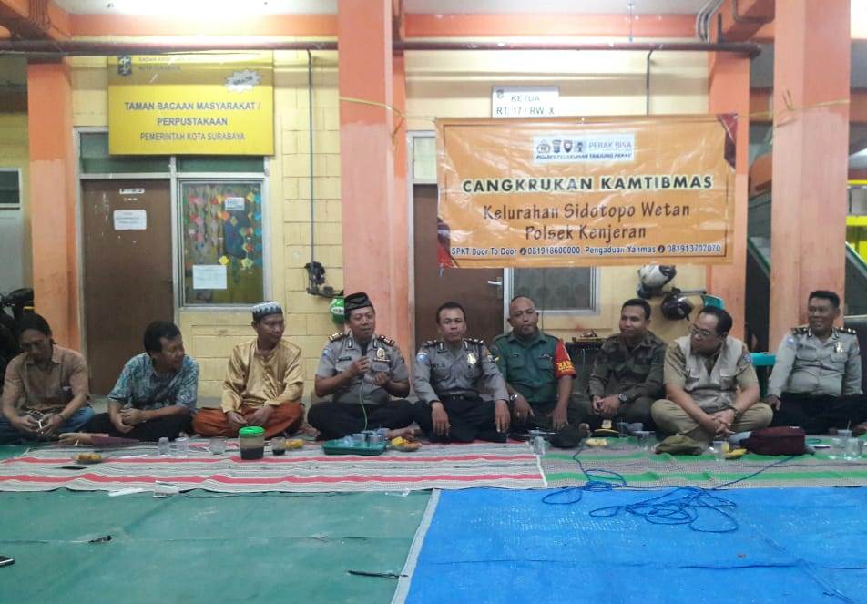 Kegiatan yang berlangsung mulai pukul 19.55 ini dipimpin Kanit Binmas Polsek Kenjeran, Ipda Dwi Rahardjo yang didampingi beberapa personil. Termasuk diantaranya Aiptu Tri Suhartono Babinkamtibmas Sidotopo Wetan dan Aiptu Bambang Banit Intelkam Polsek Kenjeran.