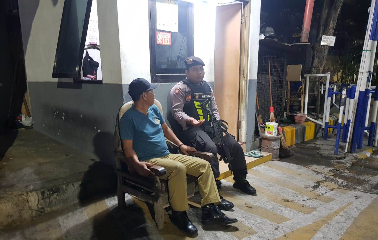 Personil Satsabhara menghimbau agar petugas sekuriti rutin melakukan kontrol keliling dan waspada terhadap setiap orang yang tidak dikenal.