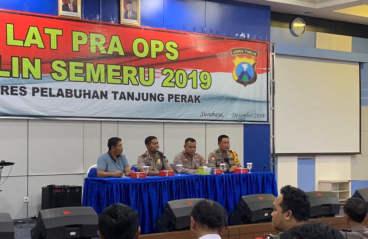 Seputarperak.com- Latihan Pra Operasi (Latpraops) Lilin Semeru 2019 digelar Polres Pelabuhan Tanjung Perak di gedung PT BJTI, Kamis siang, 19 Desember 2019.