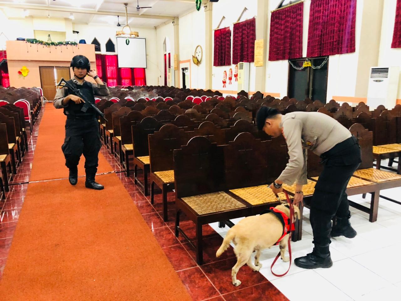 Seputarperak.com- Unit Raimas dan Unit Satwa Satsabhara Polres Pelabuhan Tanjung Perak melaksanakan sterilisasi gereja dalam rangka pengamanan ibadah Natal, Selasa pagi, 24 Desember 2019.