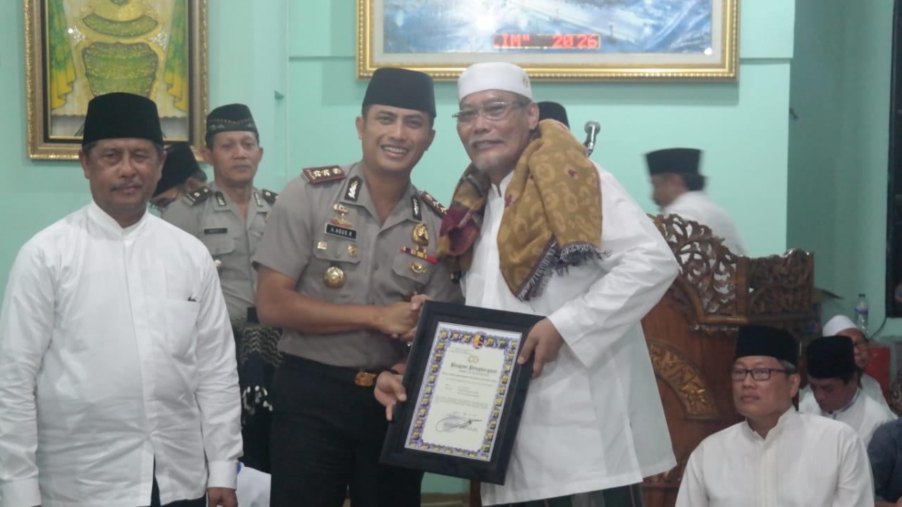 Di acara tersebut, Kapolres memberikan penghargaan kepada KH Ali Badri, karena selama ini ikut menjaga keamanan dan ketertiban di lingkungannya.