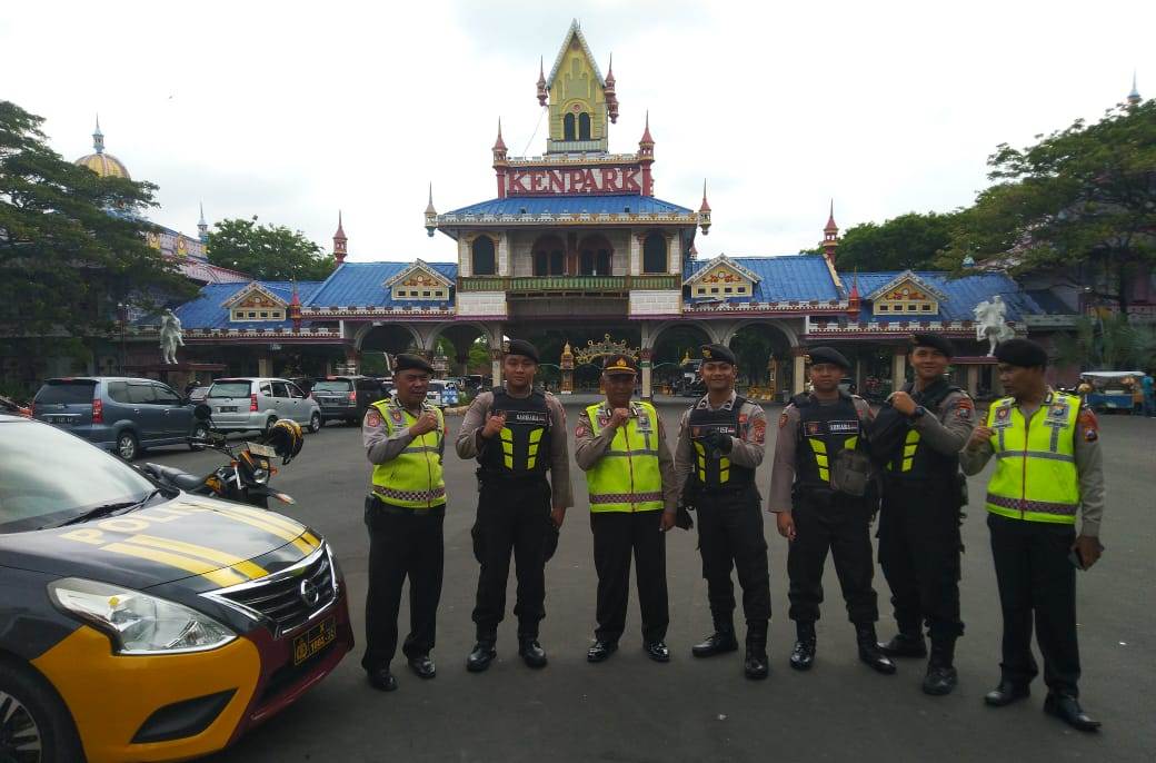 Seputarperak.com- Untuk mengantisipasi kerawanan libur awal tahun di wisata Kenpark, pengamanan dilakukan anggota Satsabhara Polres Pelabuhan Tanjung Perak, Rabu, 1 Januari 2020.
