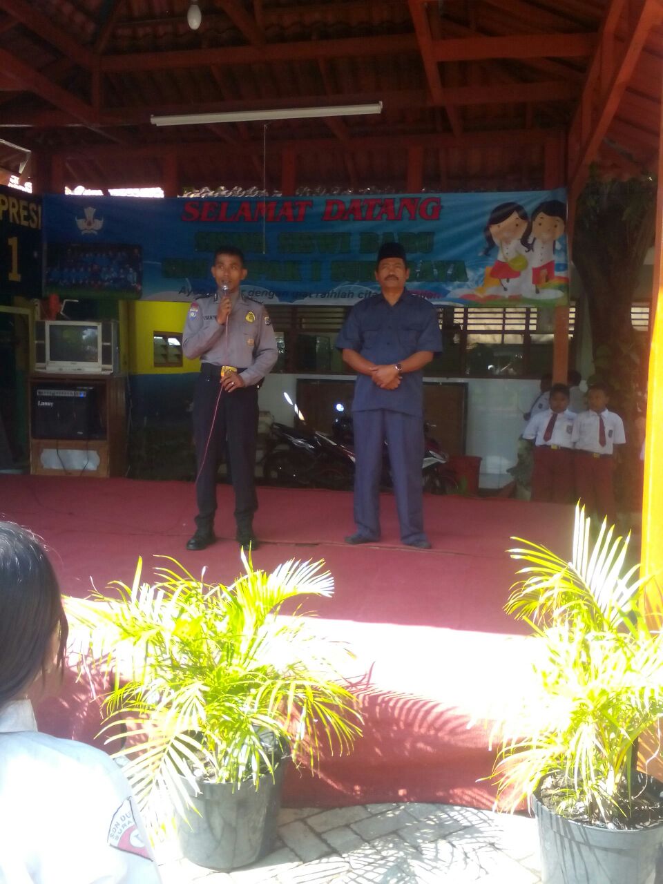Senin pagi, 23 Juli 2018, Brigadir Busaryanto selaku Babinkamtibmas Dupak, didampingi oleh Bapak Hadi, Kepala Sekolah SDN Dupak I, menyapa semua siswa dan siswi yang tengah berkumpul di lapangan.