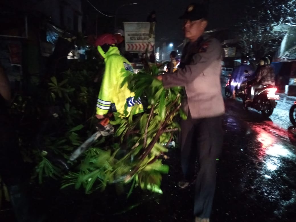 Saat itu evakuasi pohon tumbang dibantu oleh anggota Polsek Semampir dan anggota Jasa Marga.