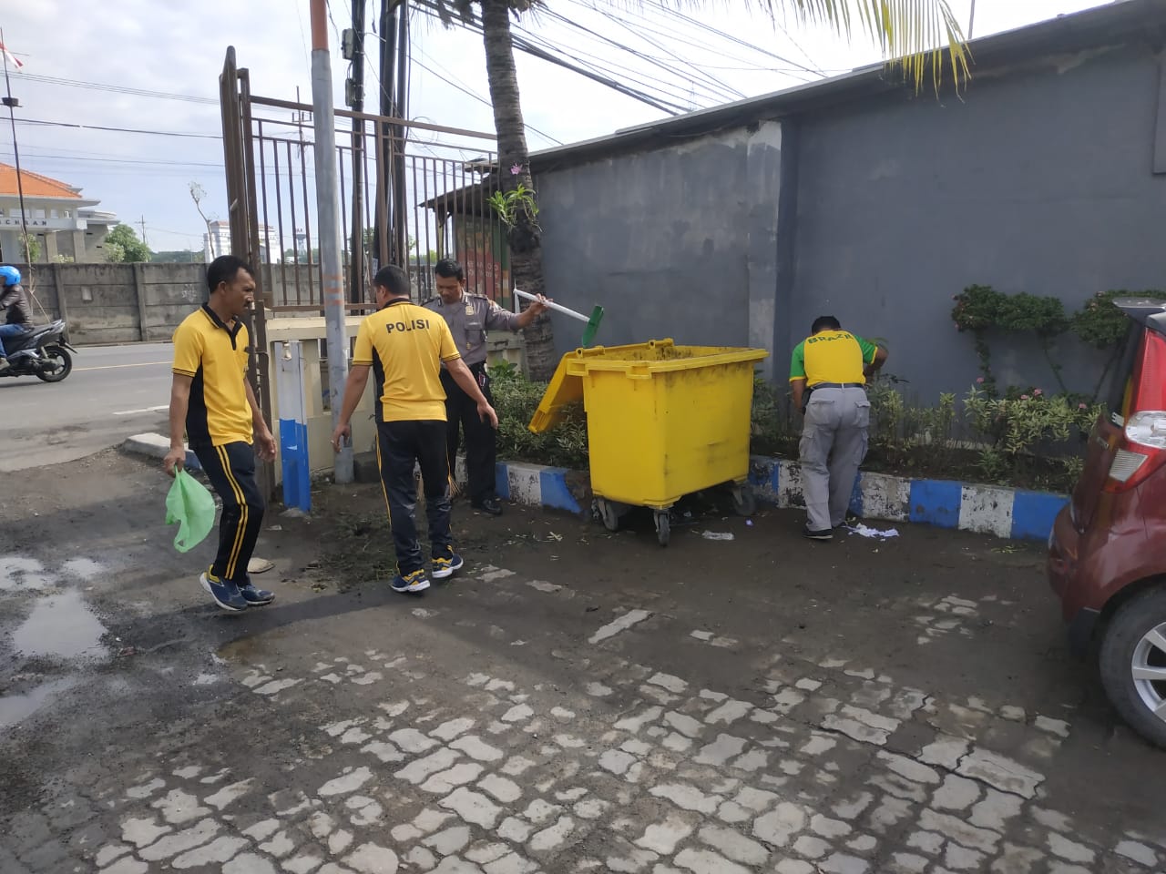 Seluruh personil yang terlibat nampak begitu bersemangat melakukan bersih-bersih mako. Mulai menyapu, mengepel, sampai memunguti dan membuang sampah yang berserakan. Termasuk yang berasal dari daun-daun kering.