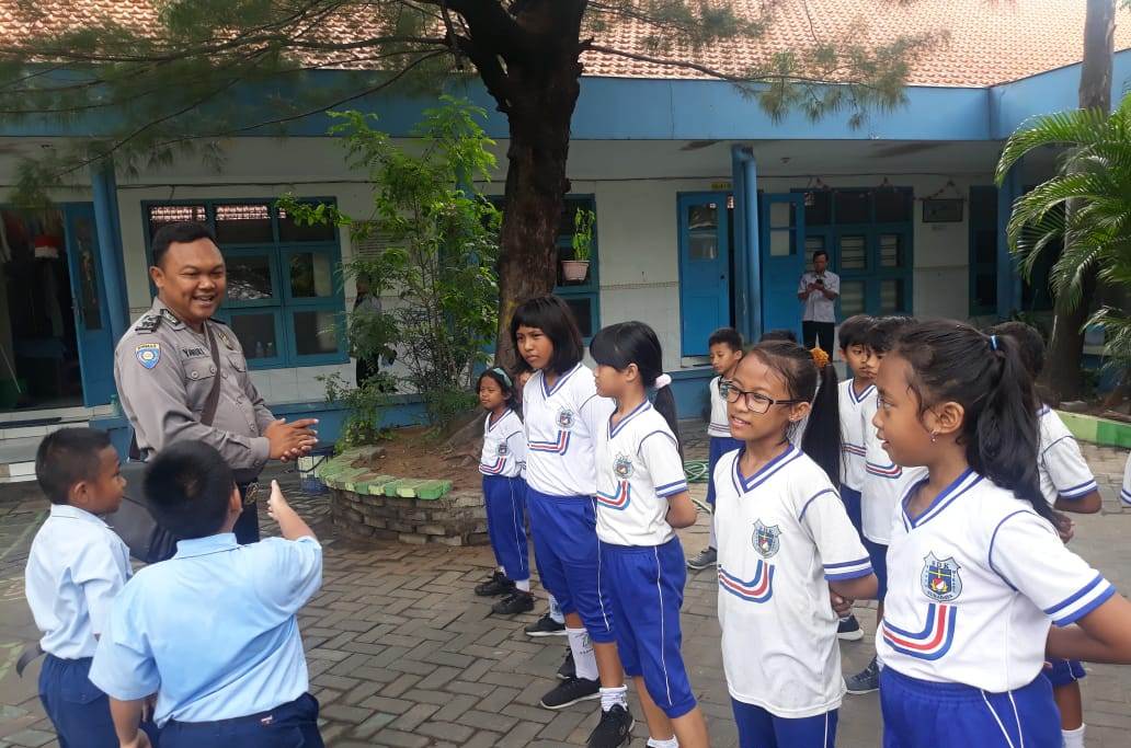 Dalam kunjungannya Rabu pagi, 15 Januari 2020, Aipda Yanuri menyampaikan pesan-pesan positif kepada beberapa murid.