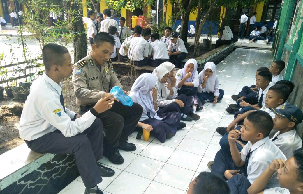 Seputarperak.com- Himbauan jaga kesehatan disampaikan Ipda Eko Mustaghfirin, Panit Binmas Polsek Asemrowo, Polres Pelabuhan Tanjung Perak kepada murid-murid SMPN 42, Jalan Dupak Rukun, Rabu pagi, 22 Januari 2020.