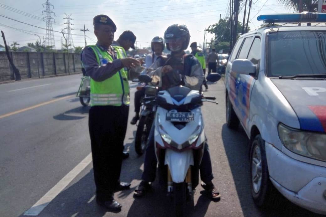 Seperti yang dilakukan personil gabungan Unit Lantas dan Unit Sabhara di Jalan Kalianak, depan Mapolsek, Rabu pagi, 22 Januari 2020.