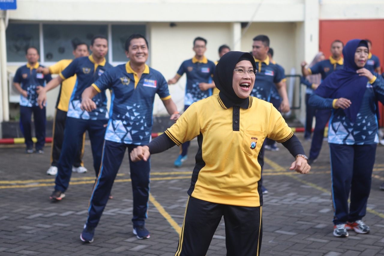 Seputarperak.com- Kapolres Pelabuhan Tanjung Perak, AKBP Ganis Setyaningrum, S.Si, MH mengikuti kegiatan olahraga bersama di kantor Bea Cukai Tanjung Perak, Jalan Perak Barat, Jumat pagi, 24 Januari 2020.