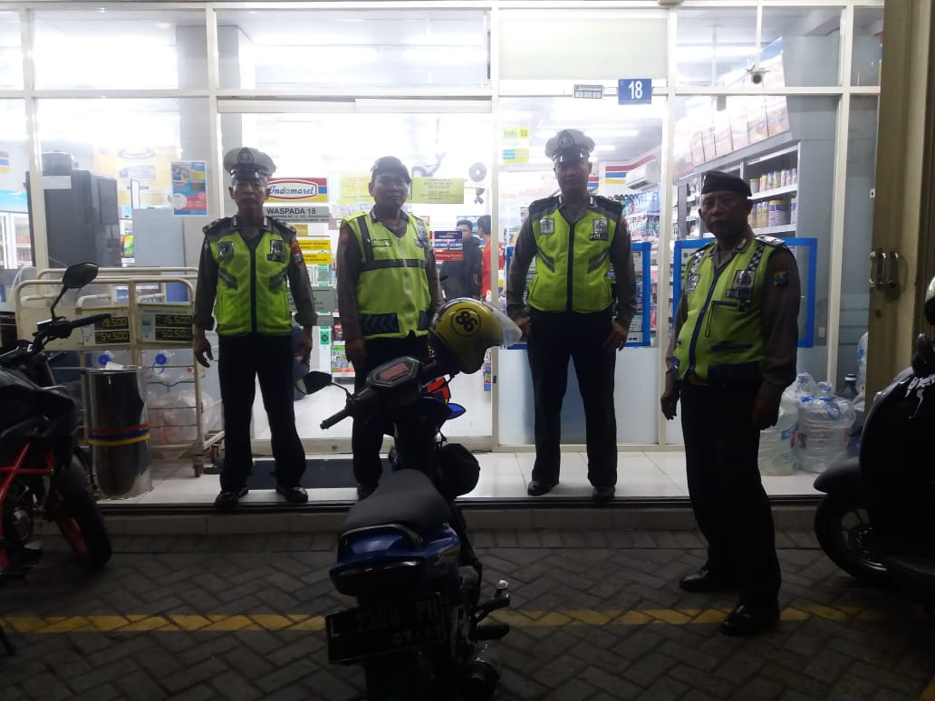 Seputarperak.com- Kegiatan patroli malam dilakukan personil gabungan Unit Lantas dan Unit Sabhara Polsek Pabean Cantikan, Polres Pelabuhan Tanjung Perak di Indomart, Jalan Stasiun Kota, Kamis, 30 Januari 2020.