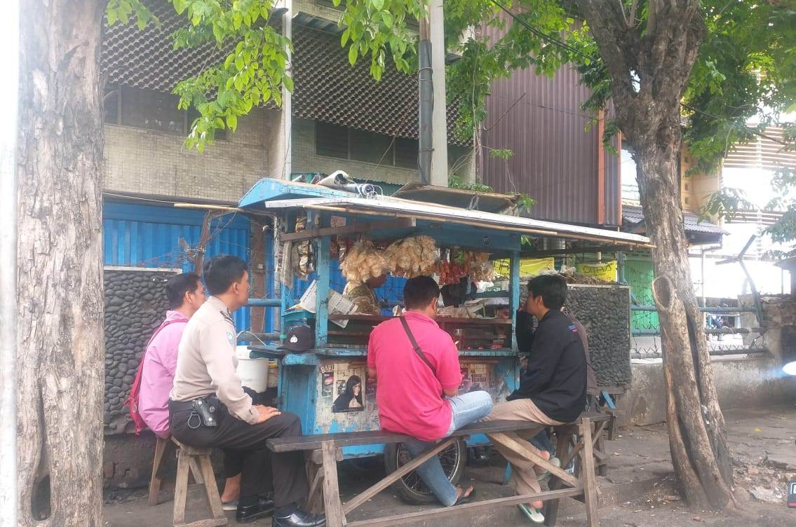 Seputarperak.com- Himbauan berkendara aman di musim hujan disampaikan Aiptu Made Suarthana, Babinkamtibmas Bongkaran, Polsek Pabean Cantikan, Polres Pelabuhan Tanjung Perak kepada para pengunjung warung di Jalan Siaga, Jumat pagi, 31 Januari 2020.