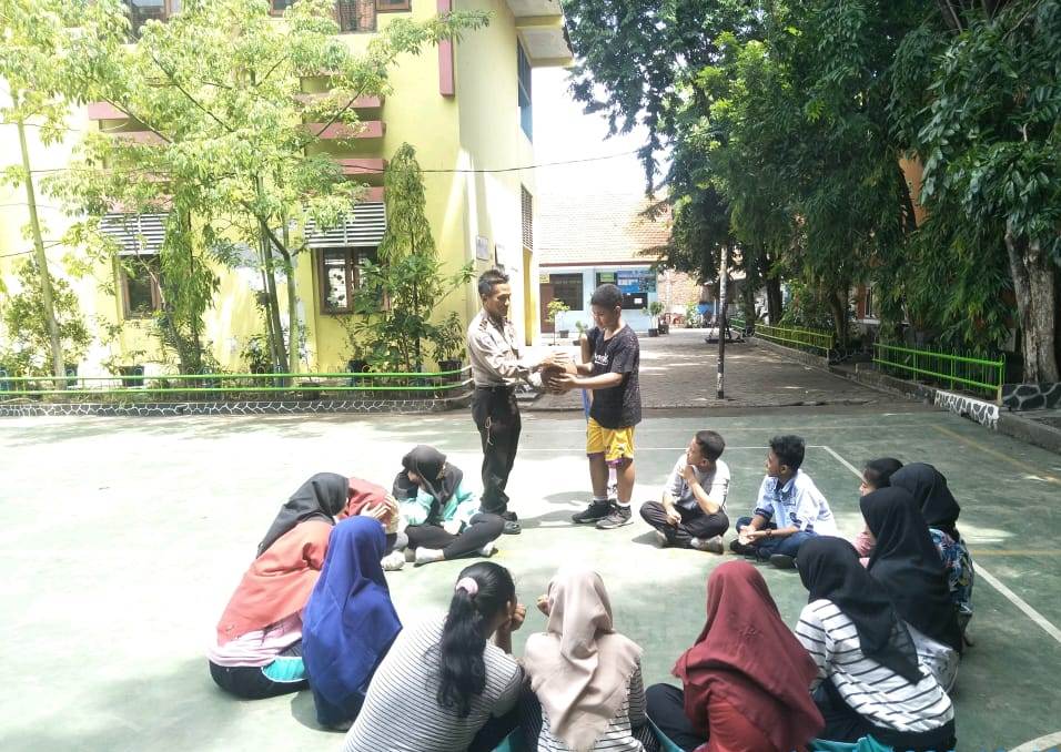 Seputarperak.com- Kunjungan dilakukan Ipda Eko Mustaghfirin, Panit Binmas Polsek Asemrowo, Polres Pelabuhan Tanjung Perak ke SMPN 42, Jalan Dupak Rukun, Sabtu pagi, 1 Pebruari 2020.