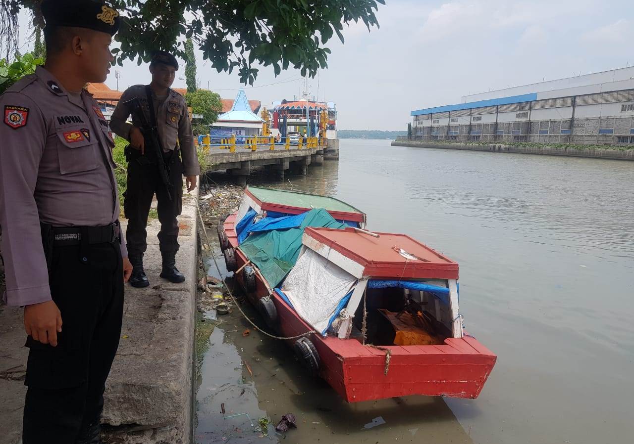 Seputarperak.com- Patroli dilakukan pesonil Raimas Satsabhara Polres Pelabuhan Tanjung Perak di Pelabuhan Kalimas, Sabtu siang, 1 Pebruari 2020.