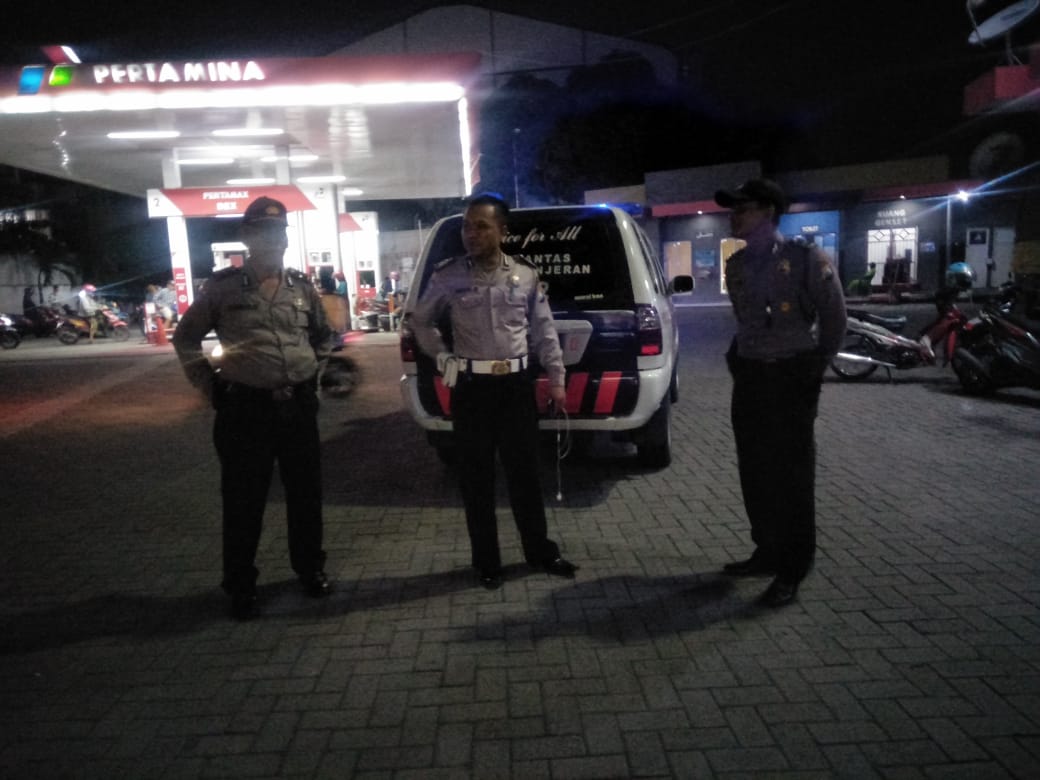 Seputarperak.com- Patroli malam dilakukan personil Unit Lantas dan Unit Sabhara Polsek Kenjeran di SPBU Jalan H.M Noer, Minggu, 9 Pebruari 2020.