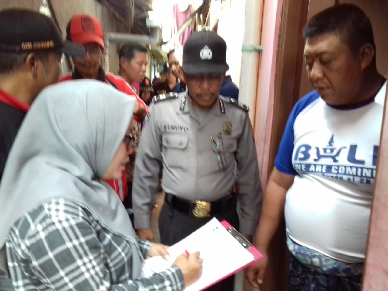 Satu persatu penghuni kos didata dan diminta menunjukkan KTP asli mereka. Sedangkan untuk yang tinggal berpasangan diminta menunjukkan buku nikah selain KTP.