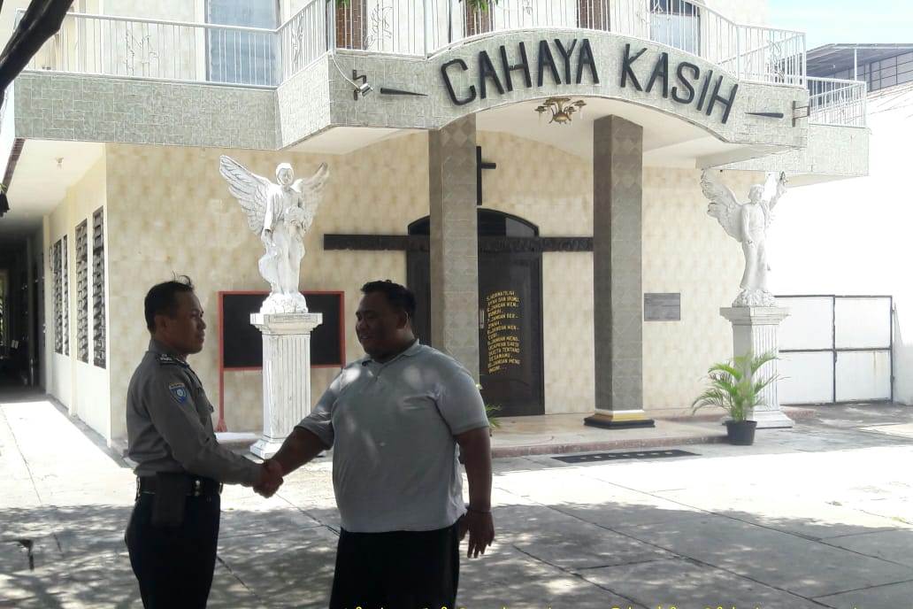Dalam kunjungannya Kamis siang, 13 Pebruari 2020, Aiptu Tri menyampaikan ke petugas sekuriti geraja agar selalu waspada terhadap kehadiran orang-orang yang tidak dikenal.