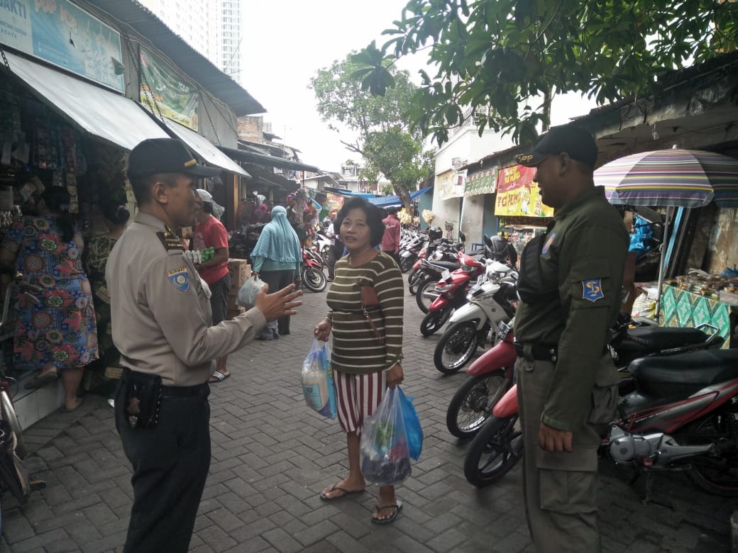 Seputarperak.com- Himbauan kamtibmas disampaikan Ipda Eko Mustaghfirin, Panit Binmas Polsek Asemrowo, Polres Pelabuhan Tanjung Perak kepada pengunjung pasar tradisional di Jalan Asemraya, Jumat pagi, 14 Pebruari 2020.