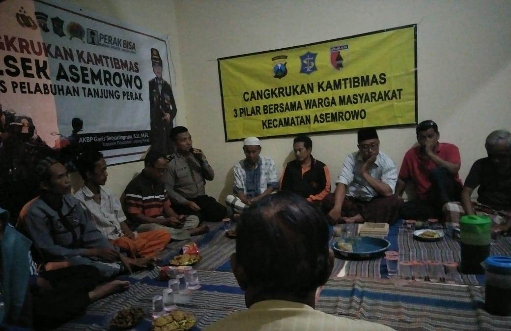 Seputarperak.com- Polsek Asemrowo, Polres Pelabuhan Tanjung Perak menggelar kegiatan cangkrukan bersama warga RW 05 Tambak Langon, Senin malam, 17 Pebruari 2020.